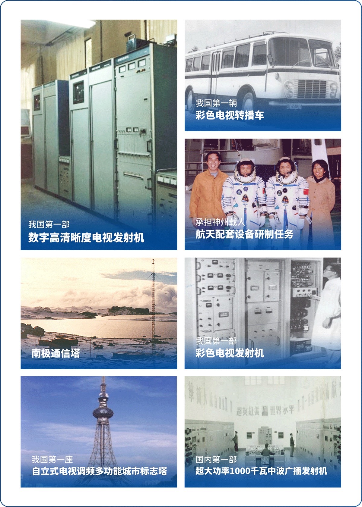 北广不仅为我国的广播、电视、通信事业研制并提供了大量先进的发射设备,还先后为我国第一枚运载火箭、第一颗同步卫星、第一次南极考察等重要工程研制了关键配套设备,多次受到中共中央、国务院、中央军委的表彰。1978年以来,累计获得国家级、部级、市级科技成果奖项200余项。